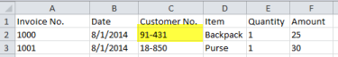 Below is an import file that does not have a customer name but instead has the customer account no.