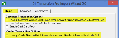 Next, within Transaction Pro, you would need to select the option from the basic tab, “Lookup Customer Name in QuickBooks when Account Number is mapped to Customer field.”