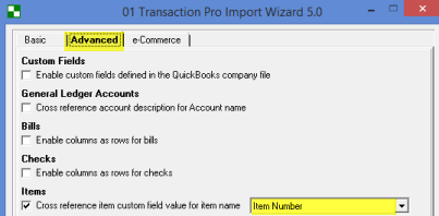 Advanced Tip: If you use sub items in QuickBooks but your import file does not contain both the Item and the sub item, separated by a colon but only the sub item, store the sub item name in the custom field for this item.