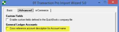 Then you need to select the option, cross reference account description for Account Name on the Advanced Tab of the program options within Transaction Pro.