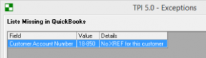 When you select the next button, Transaction Pro Importer looks through the account no. fields on all your customers. In this example, the second transaction with an account no. does not already exist with your QuickBooks company file. You will need to add this customer into your QuickBooks company file to complete the import.
