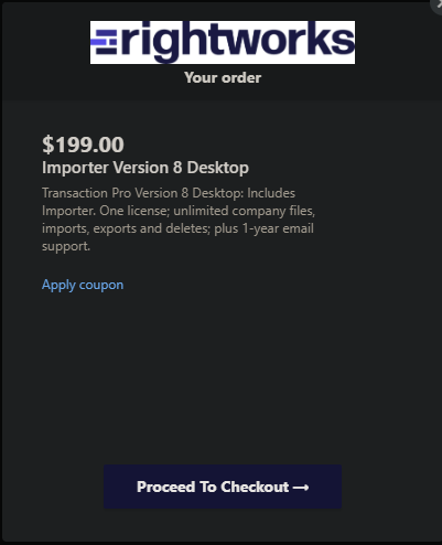 - "UPGRADE2V8" For 20% off, works for only Transaction Pro Desktop, should only be provided to a customer upgrading from an older version of Transaction Pro Desktop Version, the discount code works for both "Importer only" and "Importer / Exporter / Deleter PRO"